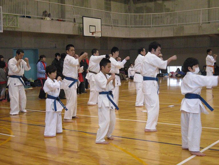 前回の審査から規定の型は全員で行います。出来る人は最後まで残ってやります。
